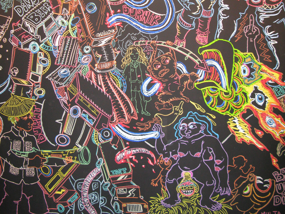 Kangarok III, 2008, pastel and chalk on wall, 14’x35’